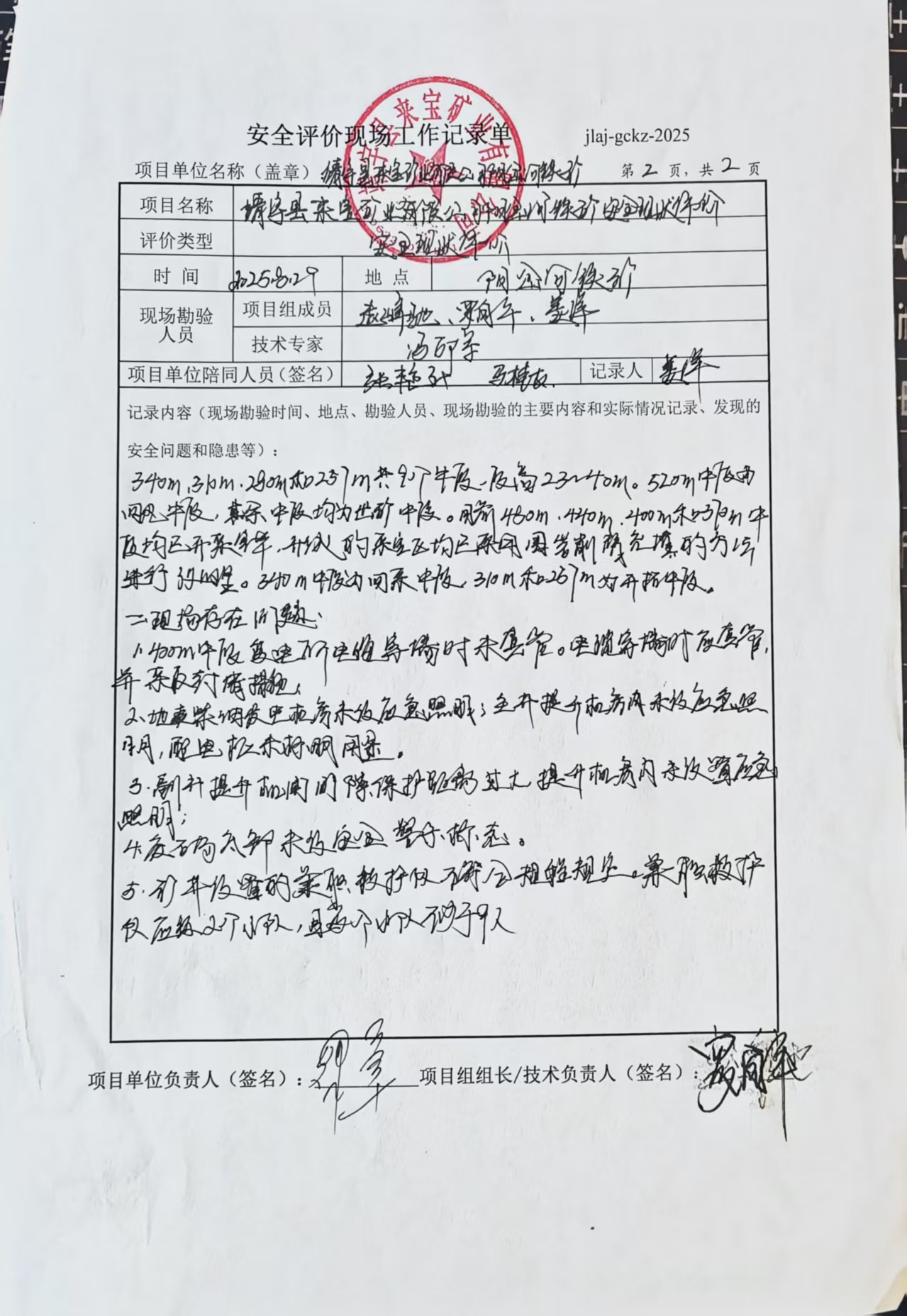 2025年3月,委托吉林省有色金属地质勘查局六0二队进行了隐蔽致灾因素普查工作,编制了《靖宇来宝矿业有限公司阳岔河铁矿隐蔽致灾因素普查报告》,查清了矿区范围内的隐蔽致灾因素。