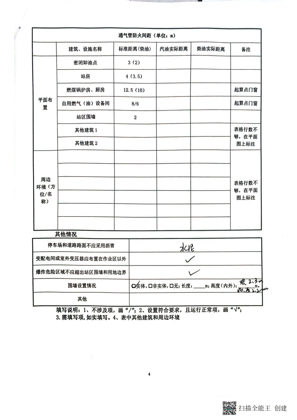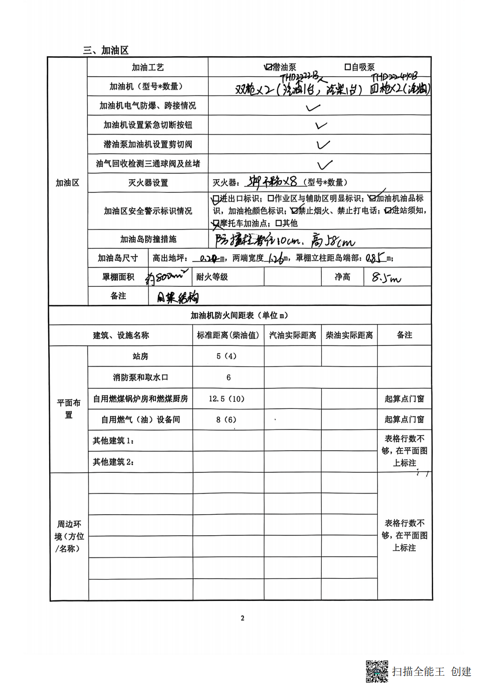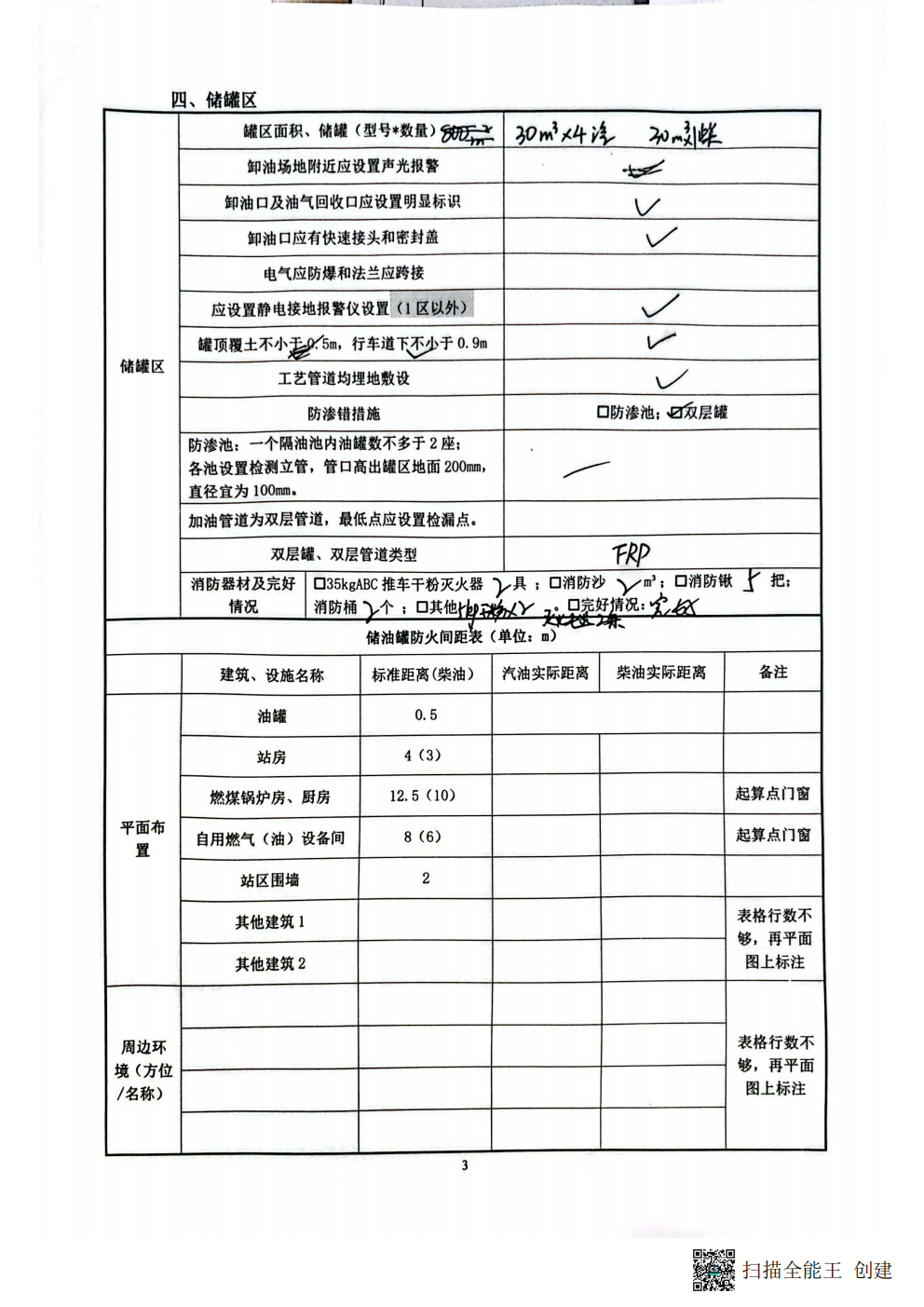 项目概况:该站油罐区设有5座内钢外玻璃纤维增强塑料(SF)双层油罐,其中4座30m3汽油罐,1座30m3柴油罐,总罐容135m3(柴油罐容积折半),依据《汽车加油加气加氢站技术标准》(GB50156-2021)第3.0.9条的规定,该站属于二级加油站。