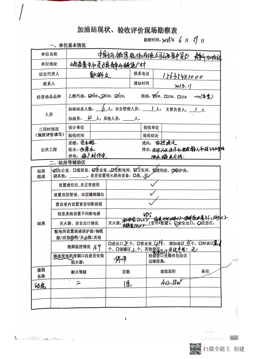 建设单位名称:中国石化销售股份有限公司山西晋中灵石静升加油站