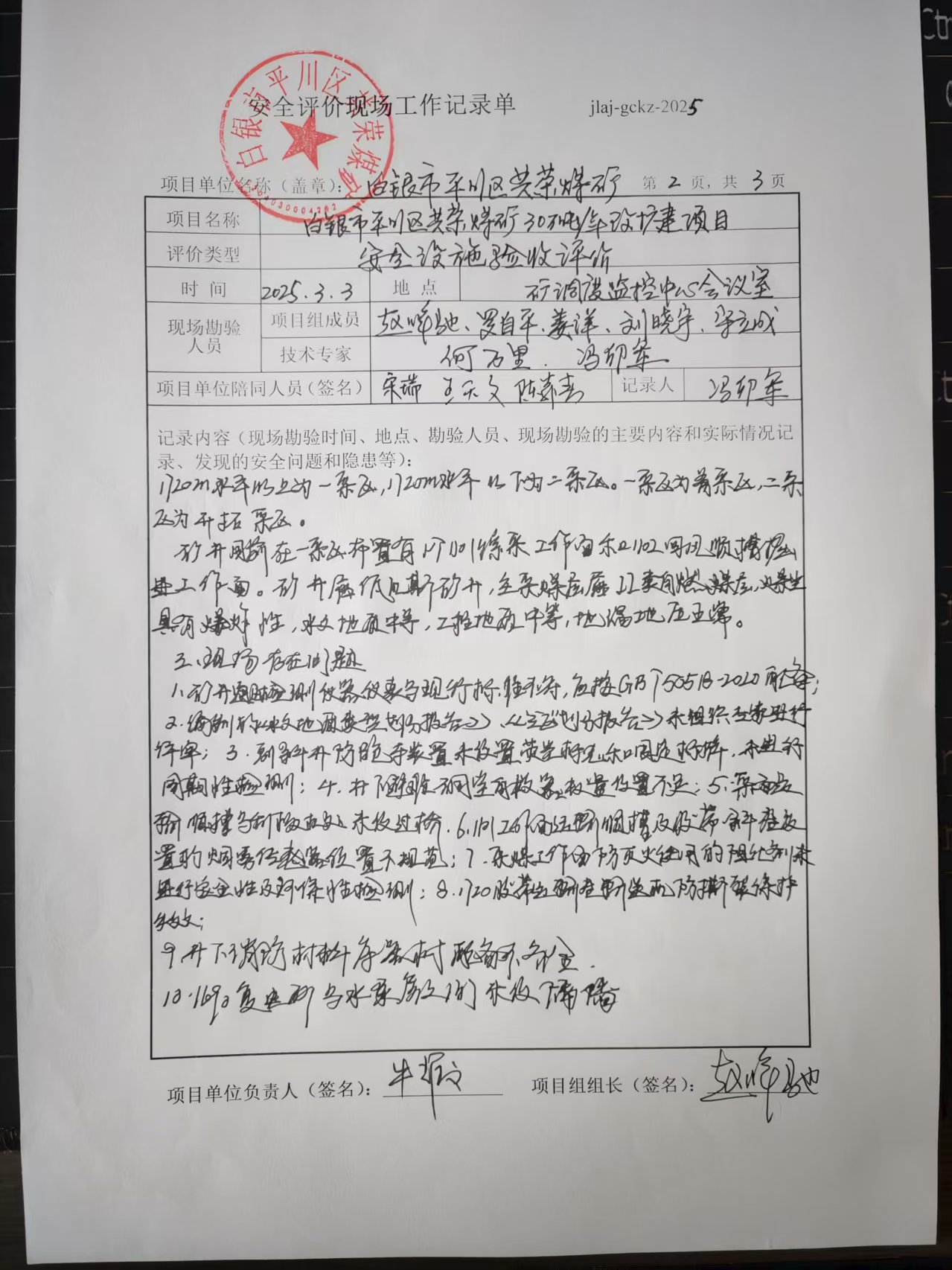 项目名称:白银市平川区共荣煤矿 0.3Mt/a改扩建项目安全设施验收评价