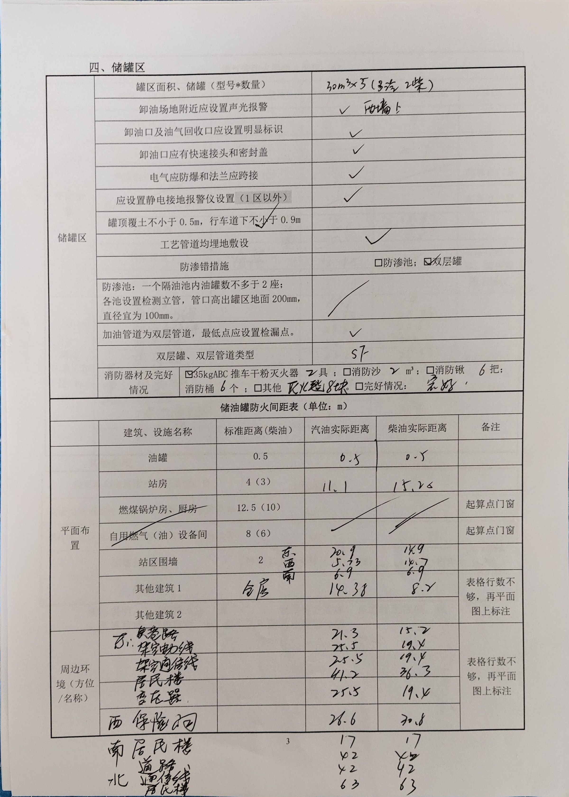 该加油站油罐区设有5座双层SF罐埋地卧式储油罐,其中30m3乙醇汽油储罐3座、30m3柴油储罐2座,总储存能力150m3,总容积120m3(柴油罐容积折半计入油罐总容积),依据《汽车加油加气加氢站技术标准》(GB50156-2021)第3.0.9条的规定,该加油站属于二级加油站。