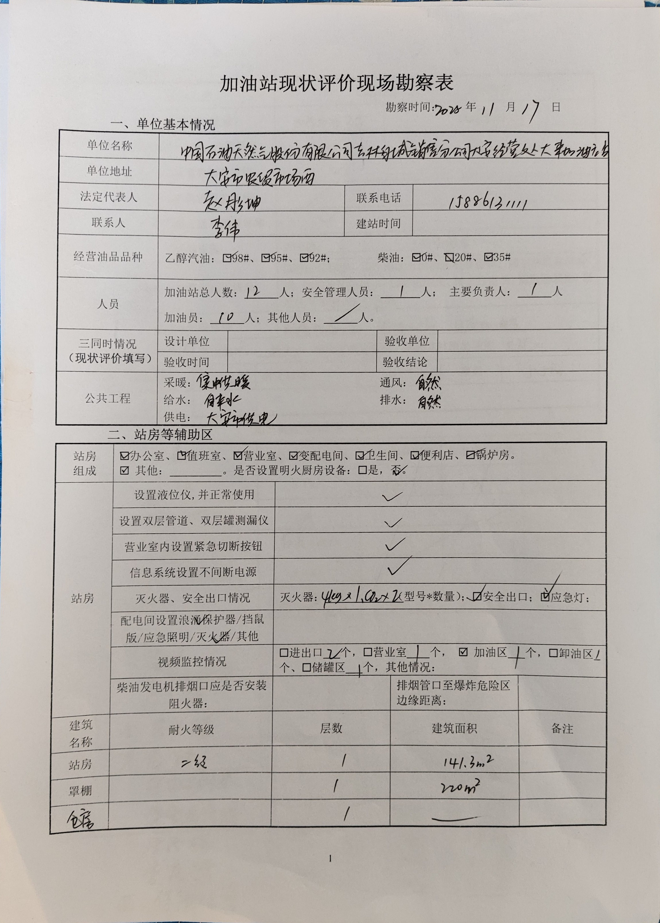 项目概况:该站负责人赵彤坤。经营范围:石油及成品油批发、零售;润滑油的销售等(依法须经批准的项目,经相关部门批准后方可开展经营活动)。现有工作人员12人,其中站长1人,专职安全员1人,加油员10人。