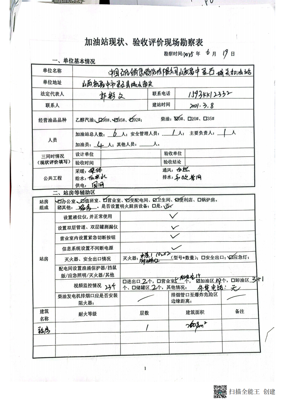 建设单位名称:中国石化销售股份有限公司山西晋中灵石城关加油站