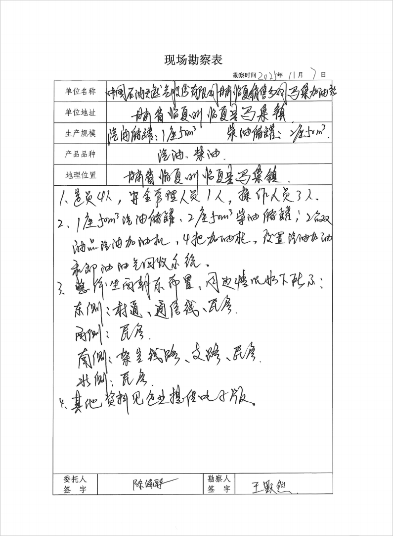 建设单位名称:中国石油天然气股份有限公司甘肃临夏销售分公司马集加油站