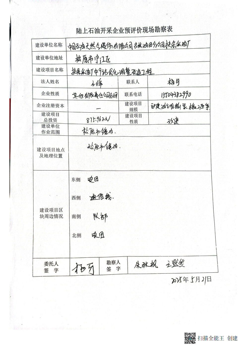 建设单位名称:中国石油天然气股份有限公司吉林油田分公司扶余采油厂