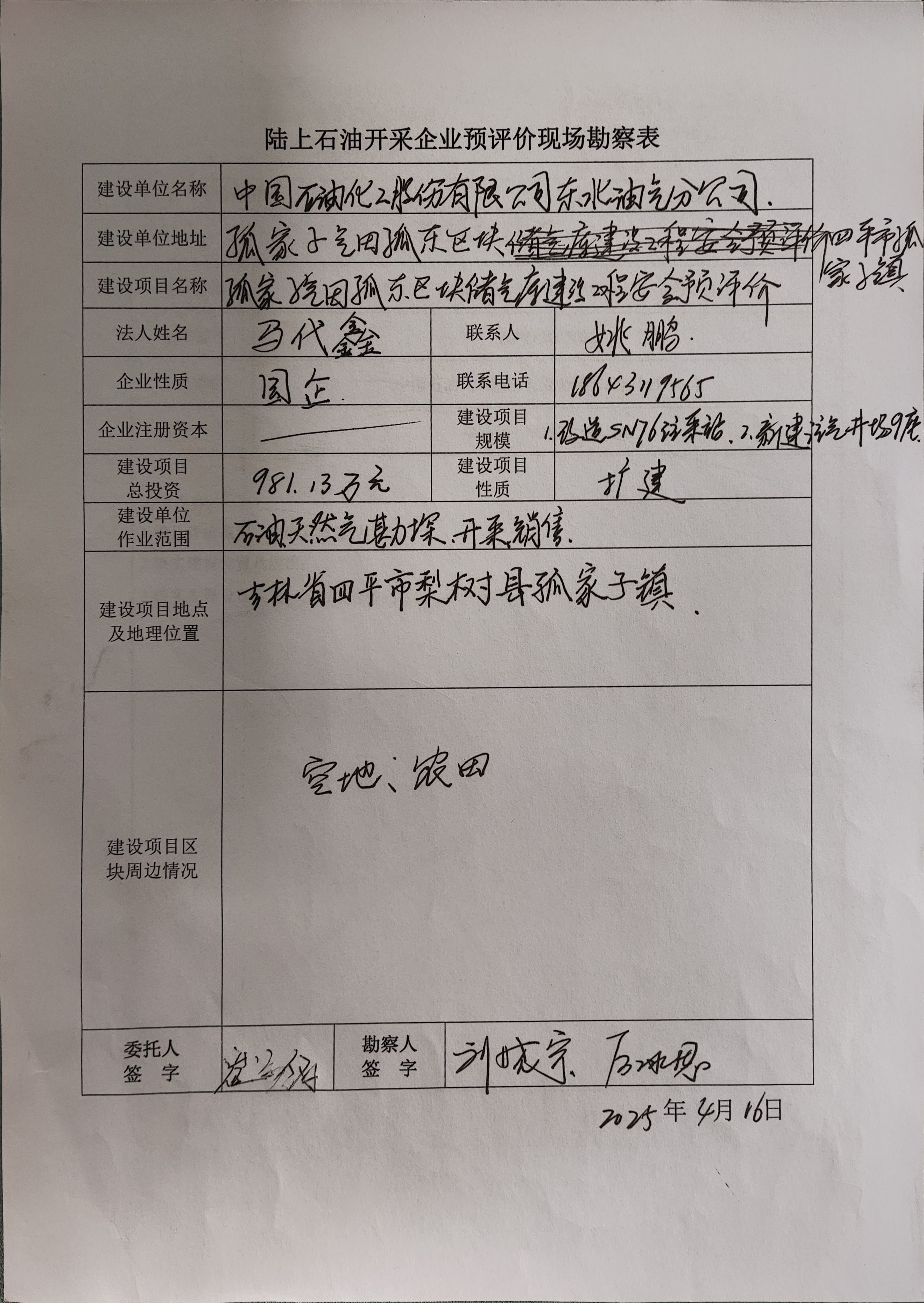 建设单位:中国石油化工股份有限公司东北油气分公司