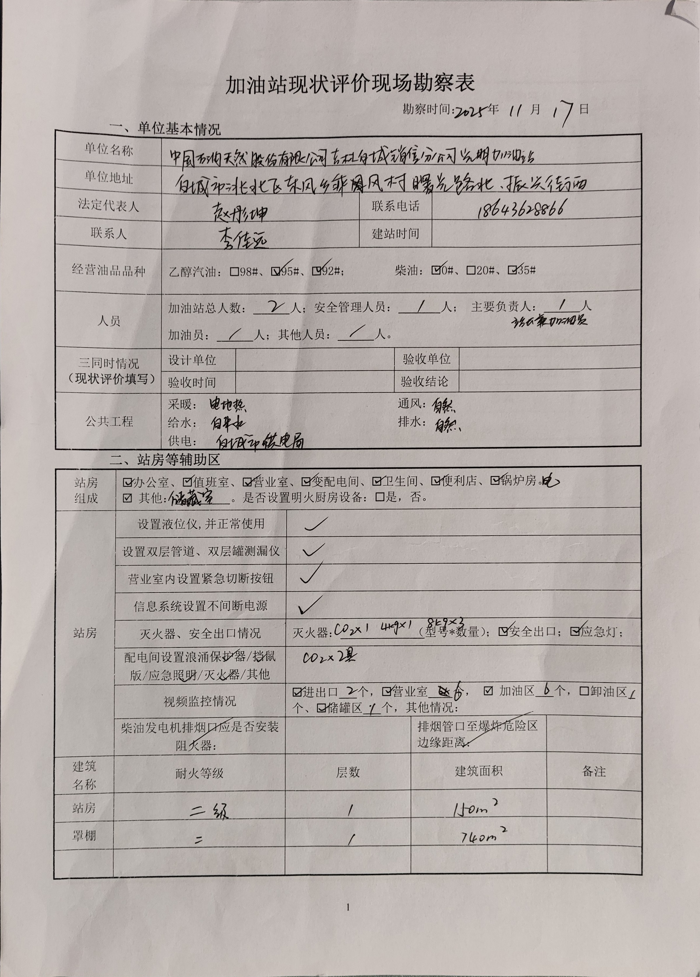 项目名称:中国石油天然气股份有限公司吉林白城销售分公司光明加油站安全现状评价