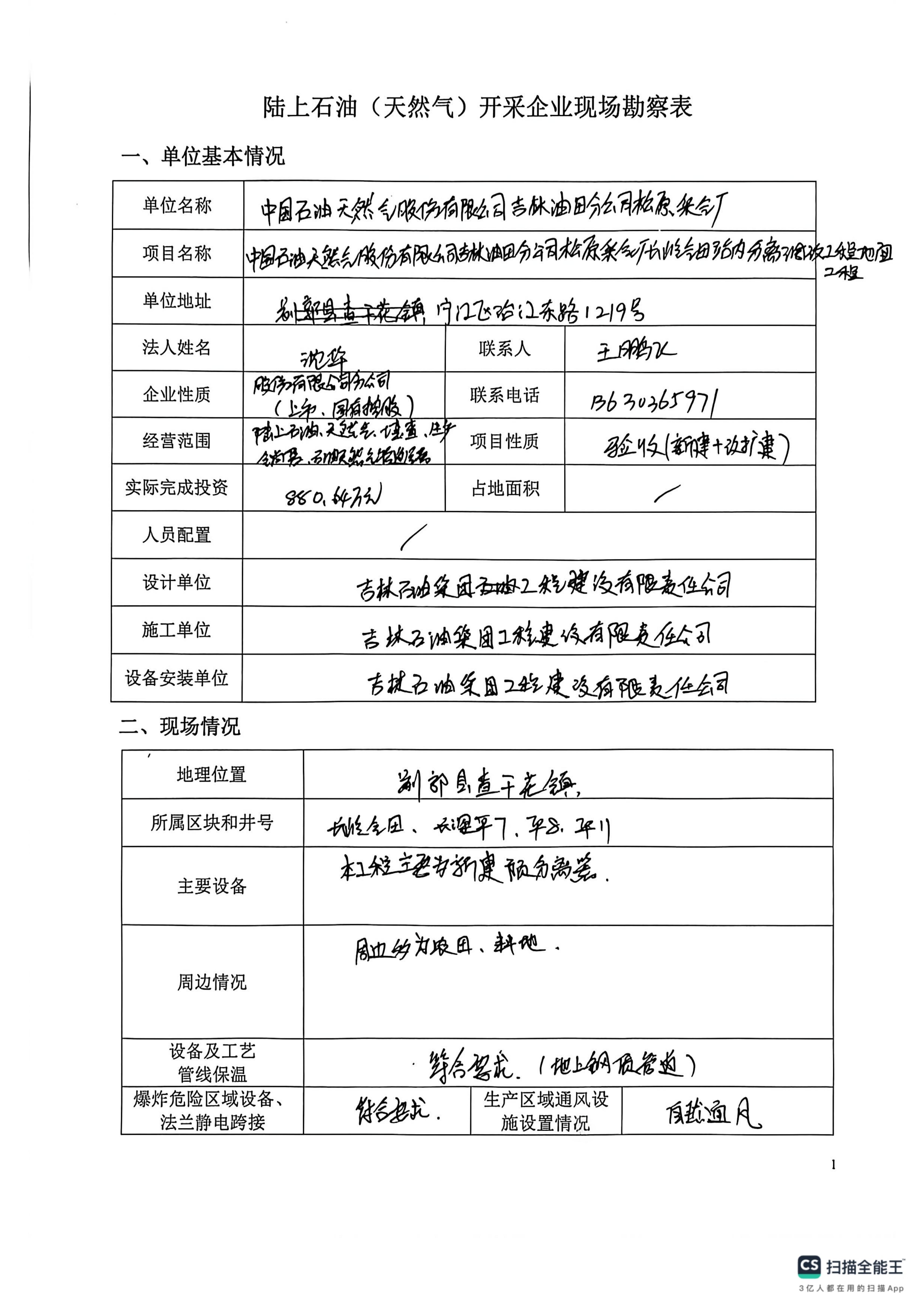 建设项目名称:中国石油天然气股份有限公司吉林油田分公司松原采气厂长岭气田站内分离调改工程地面工程安全验收评价